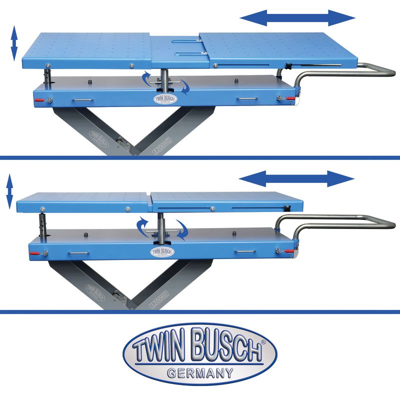 - Zvedací plošinu lze posunout a zaaretovat v bočním pohybu o 40 mm. Úhel sklonu zvedací plošiny lze také nastavit v podélném směru.