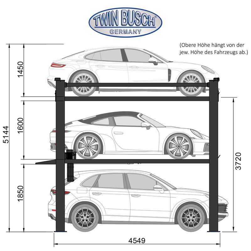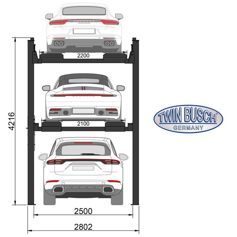 Triplexní parkovací zvedák - GREY-Line (TW-445-P-H3-400 G)