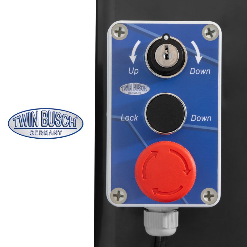 - Hydraulický píst pod jízdní plochou zajišťuje silové zvedání a spouštění